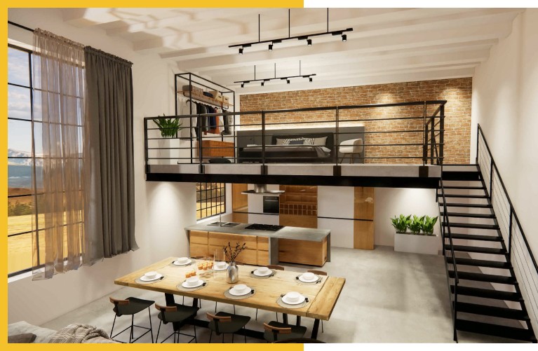 მაგალითად, პირველ დონეზე შეგიძლიათ მოაწყოთ სამზარეულო, მისაღები ან სამუშაო ზონა, ხოლო ანტრესოლზე საძინებელი, სამკითხველო კუთხე ან გარდერობი განალაგოთ. ასეთი განაწილება ქმნის ბუნებრივ ზონირებას - პირადსა და საზოგადოებრივ სივრცეებს შორის მკაფიო ზღვარს ავლებს.
